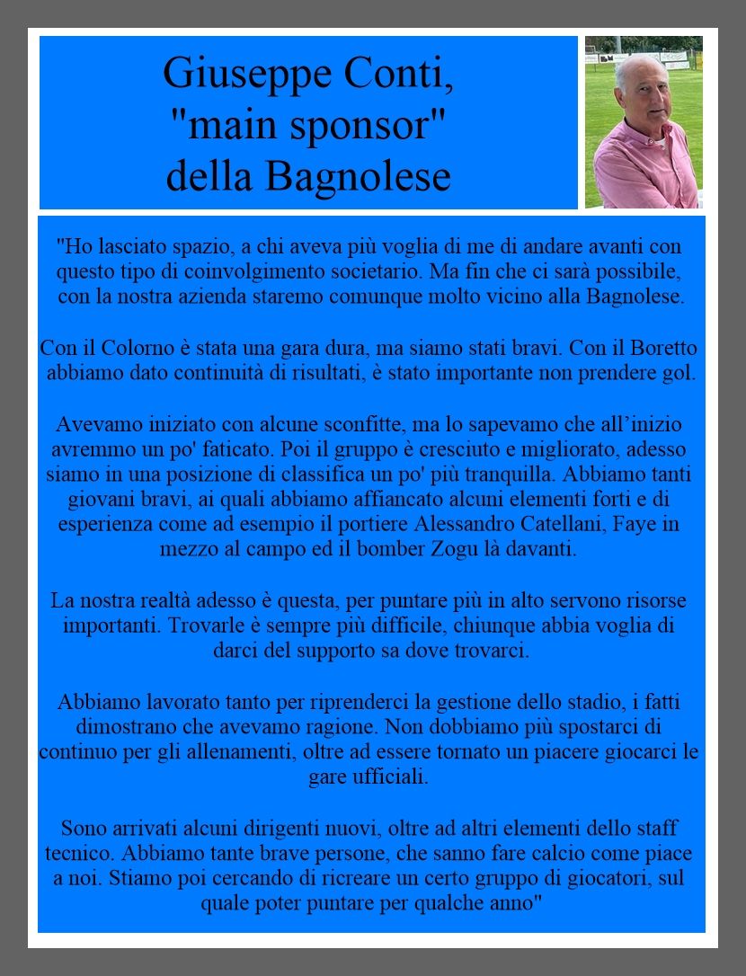 Le dichiarazioni di Giuseppe Conti, "main sponsor" della Bagnolese