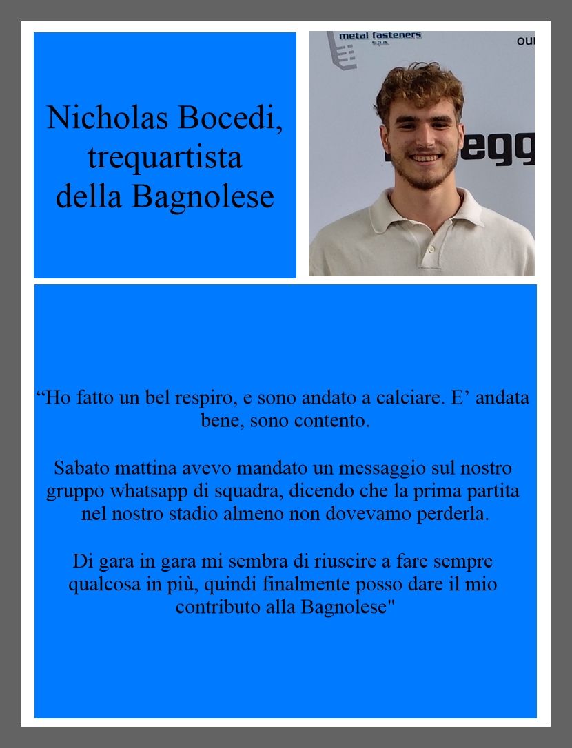 Le dichiarazioni di Nicholas Bocedi, trequartista della Bagnolese, dopo la gara contro la Langhiranese Valparma