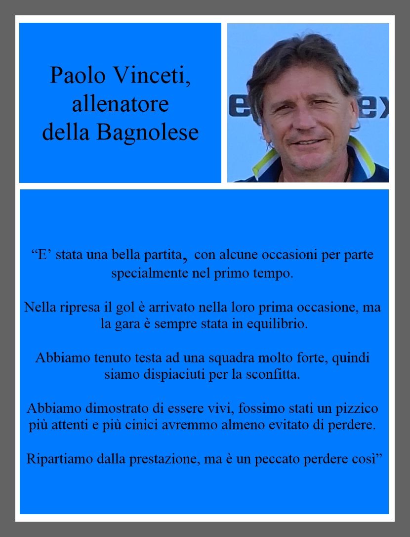 Le dichiarazioni di Paolo Vinceti, allenatore della Bagnolese, dopo la gara contro la Futura Fornovo Medesano