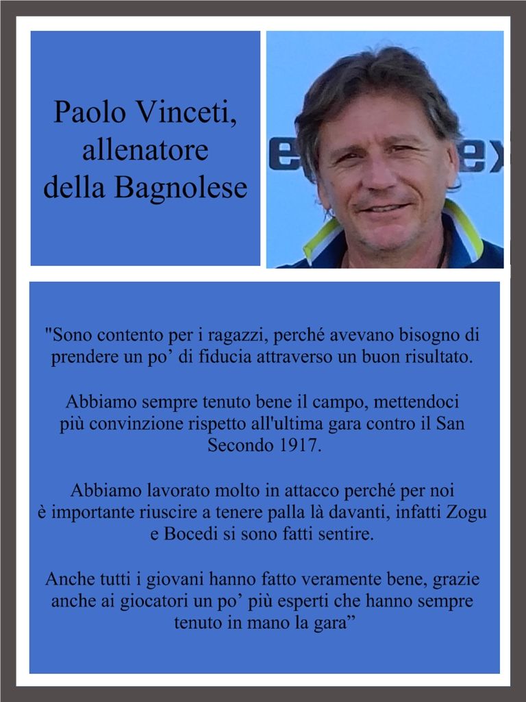 Le dichiarazioni di Paolo Vinceti, allenatore della Bagnolese, dopo la gara contro il Noceto