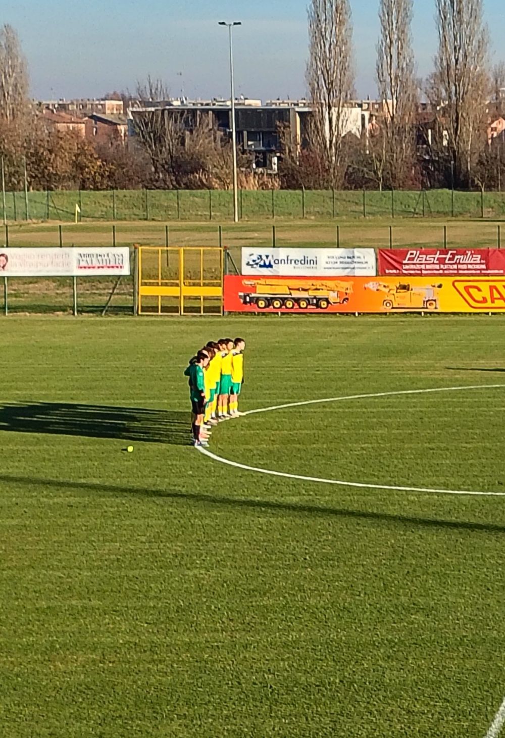 Il minuto di raccoglimento, prima della gara contro il Bibbiano San Polo, per commemorare la scomparsa di Bruno Burani, ex dirigente della Bagnolese.